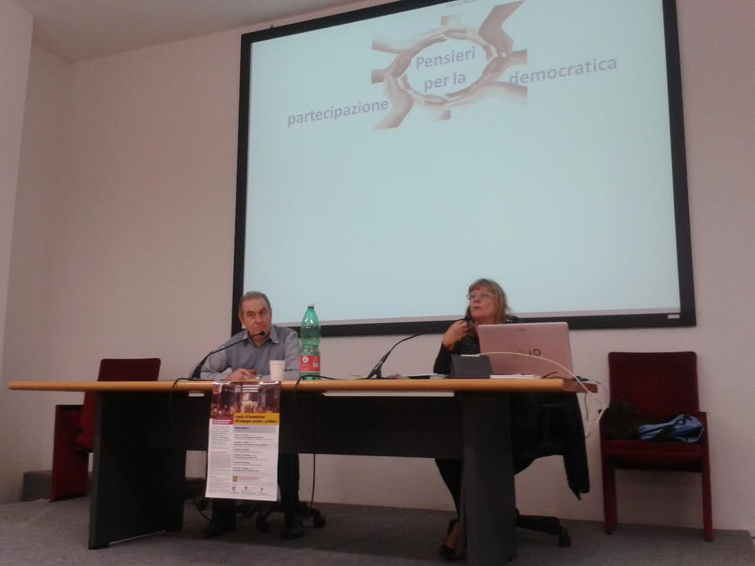 Dopo l’introduzione di Gabriele Darpetti, direttore dell’Ufficio diocesano di Pastorale Sociale e Lavoro, il quale ha sottolineato come, in questo tempo di crisi, sia quanto mai necessario porsi i giusti interrogativi, Bianca Maria Ventura si è soffermata inizialmente sul significato dell’essere partecipi, declinabile nell’essere parte di un gruppo o nel significato di prendere parte a un atto o a un processo. La presidente Ventura, nel parlare della radice della partecipazione che è il fondamento stesso della democrazia, ha ripreso la figura di Aristotele e l’idea antropologica dello zòon politikòn, ovvero dell’uomo che è per natura animale sociale, e del bíos politikós. “Secondo Aristotele – ha spiegato Ventura facendo riferimento al contesto della polis greca in cui il filosofo vive – la vita politica non è solo un dilatare la sfera privata, ma è la capacità di andare al di là di ciò che è utile per se stessi per ragionare su ciò che è universalmente buono, ovvero buono per tutti”. Bianca Maria Ventura ha, poi, enunciato le forme di buon governo secondo Aristotele e le loro degenerazioni. Bianca Maria Ventura si è soffermata inizialmente sul significato dell’essere partecipi, declinabile nell’essere parte di un gruppo o nel significato di prendere parte a un atto o a un processo.