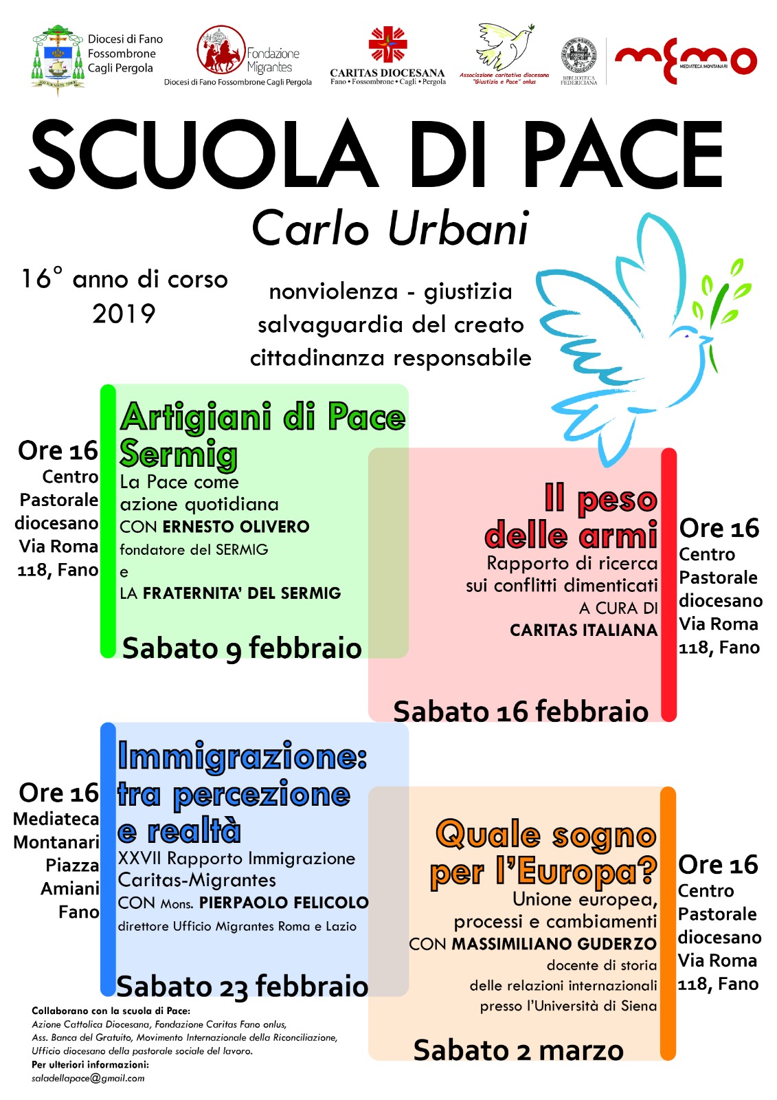 Quarto appuntamento con la Scuola di Pace “Carlo Urbani” organizzata dalla Fondazione Migrantes della Diocesi di Fano Fossombrone Cagli Pergola, dalla Caritas Diocesana, dall’Associazione “Giustizia e Pace” in collaborazione con la Mediateca Montanari.