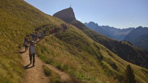 Martedì 3 settembre. Sono arrivati nella giornata di lunedì 3 settembre i 26 giovani, provenienti dalle diocesi di Fano, Pesaro e Urbino, che parteciperanno al campo vocazionale giovani organizzato dal Servizio diocesano di pastorale giovanile e vocazionale. Una settimana intensa che i giovani vivranno nel segno della riflessione e della condivisione. Questa mattina (martedì 3 settembre, ndr), complice una bellissima giornata di sole, i giovani hanno raggiunto il Passo Pordoi e stanno percorrendo Viel del Pan. “Siamo qui in questa bellissima valle – ha sottolineato don Steven Carboni responsabile del Servizio Diocesano di Pastorale Giovanile – a contemplare la bellezza della montagna, la bellezza di Dio e cercare di guardare alla propria bellezza. Siamo qui – ha proseguito don Steven – per gustare la parola ‘vocazione’ e capire il significato che ha nella vita dei giovani. Oggi faremo Viel del Pan e saliremo fino a Porta Vescovo dove celebreremo l’eucaristia e ritorneremo qui al Passo”.
