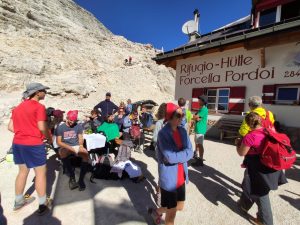 Mercoledì 4 settembre. “Oggi – fa sapere don Steven Carboni responsabile del Servizio diocesano di Pastorale Giovanile – il tempo è talmente bello che non potevamo non salire sul Pordoi. La maggior parte del gruppo ha deciso di salire a piedi fino al Rifugio Forcella. L’obiettivo di oggi è raggiungere il Piz Boè e assaporare la bellezza del panorama dalla terrazza delle Dolomiti. Celebreremo poi lì l’eucaristia e rifletteremo su questa domanda “Per chi sono io?”