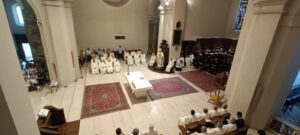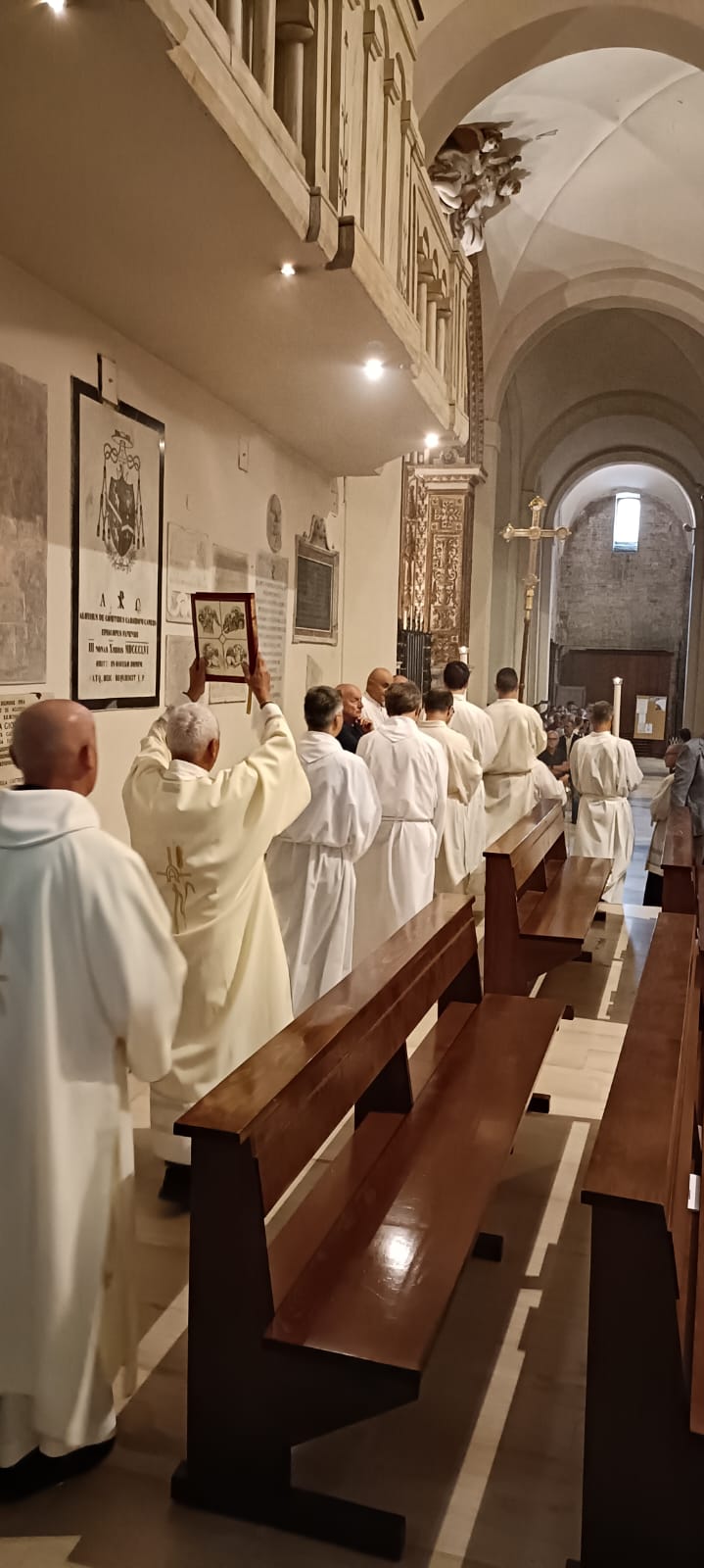 Il Vangelo proclamato nella liturgia ha offerto un ulteriore spunto: “Chi ama la moglie, il padre o la madre più di me non è degno di me”. Il Vescovo ha chiarito che non si tratta di negare gli affetti, ma di riconoscere che l’amore per Gesù è il primo posto nella vita del credente, condizione necessaria per riempire il cuore e illuminare la casa e la Chiesa. In questo senso, il diaconato è segno concreto di una disponibilità a mettere Cristo al centro, davanti a ogni altra cosa o persona. Nell’omelia non è mancato un riferimento alla storia del diaconato nella diocesi: “Una sfida accettata quarant’anni fa – ha ricordato Mons. Andreozzi – che ha portato frutti preziosi grazie al Concilio e al cammino condiviso da tanti. Ora si aprono nuove sfide per la Chiesa di oggi, che richiedono discernimento, apertura e il dono della sapienza”. Il Vescovo ha invocato lo Spirito Santo perché guidi la comunità a comprendere la volontà di Dio e a rispondere con generosità. Accogliere la croce, vivere il mistero pasquale nella propria carne, rinunciare a egoismi e ruoli vuoti: questo, ha detto, significa risorgere come creature nuove, capaci di spendere la propria vita per amore, soprattutto a favore dei più fragili, sofferenti e dimenticati, che sono le membra più preziose della Chiesa.