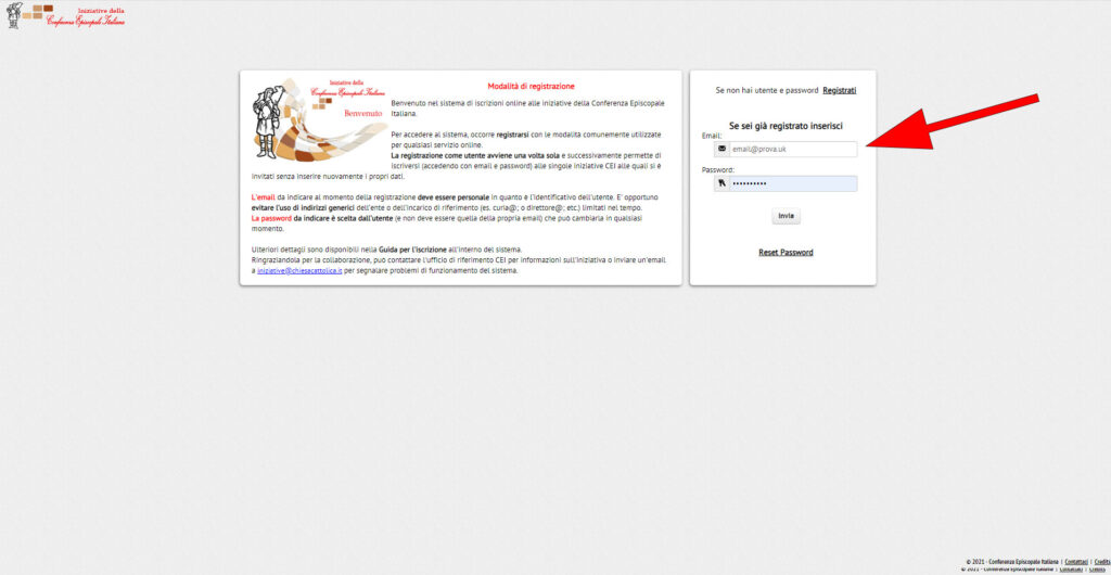 La registrazione come utente avviene una volta sola e successivamente permette di iscriversi (accedendo con email e password) alle singole iniziative CEI alle quali si è invitati senza inserire nuovamente i propri dati.