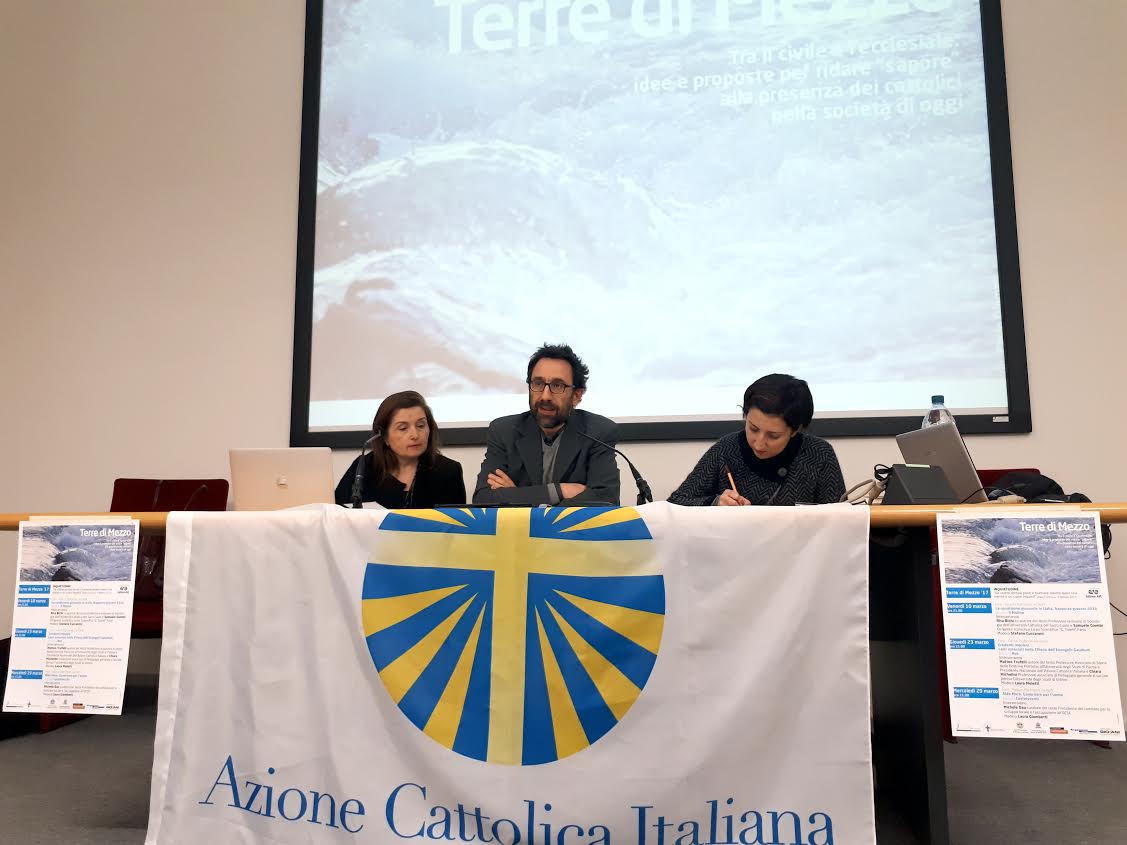 «Non si può far parte della Chiesa e dell’Azione Cattolica se non si è presi da una sana forma di inquietudine». Con queste parole, la professoressa Maria Chiara Michelini, docente presso l’Università di Urbino, ha introdotto il secondo incontro di Terre di mezzo, tenutosi giovedì 23 marzo al Centro pastorale diocesano di Fano. Per l’occasione è stato presentato il libro Credenti inquieti. Laici associati nella … Continua a leggere Laici, credenti inquieti